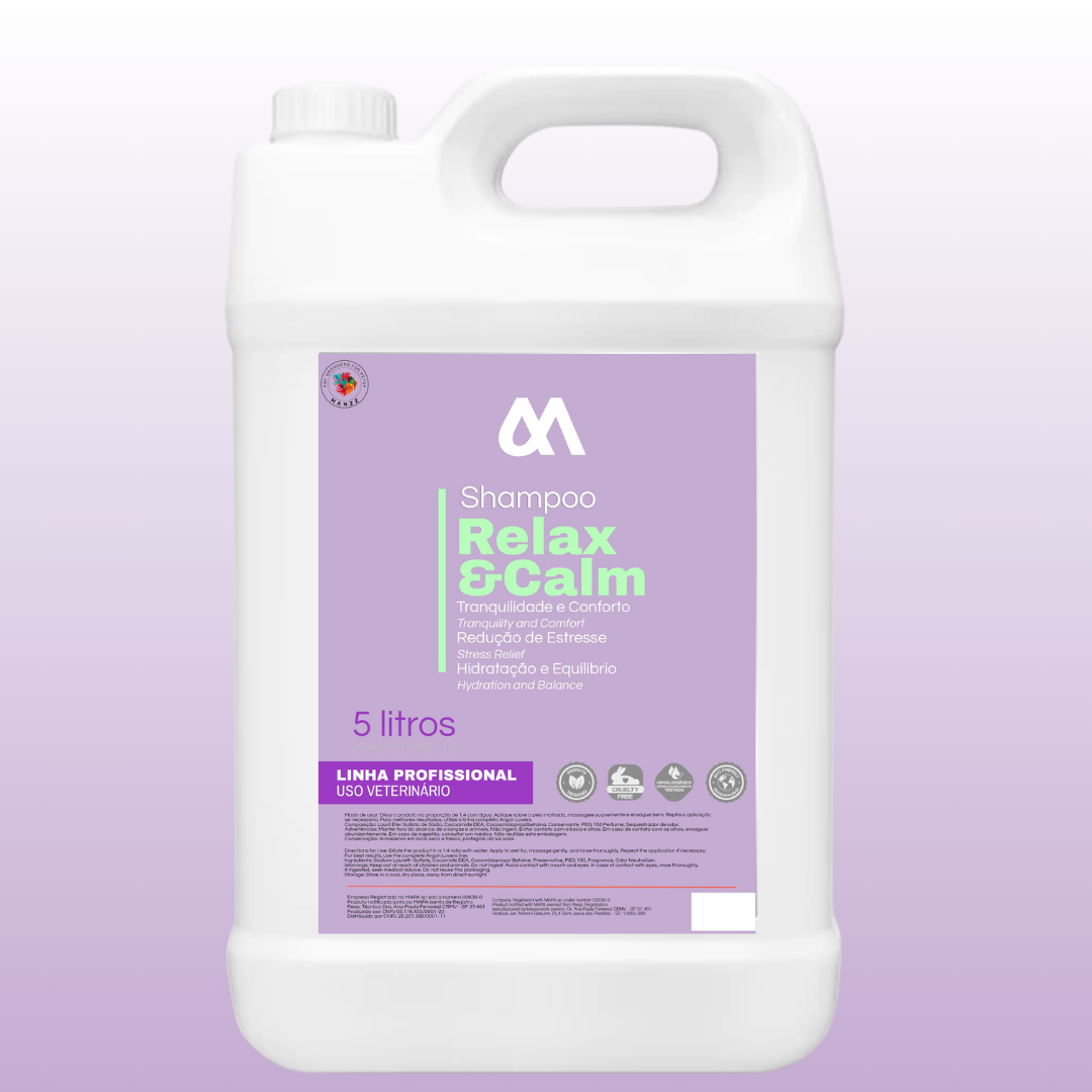 sensíveis e estressados. Sua fórmula enriquecida com camomila e chá verde proporciona uma experiência calmante, ajudando a aliviar a ansiedade durante o banho. Com ação hidratante e propriedades anti-inflamatórias naturais, cuida da pele e pelagem, promovendo maciez e equilíbrio.